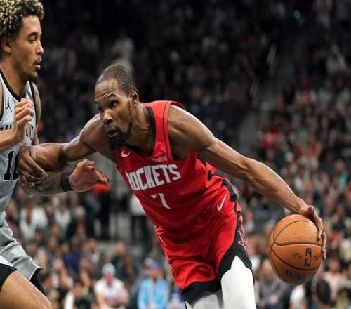 而前一場火箭隊和費城76人隊的比賽,杜蘭特的表現(xiàn)也相當(dāng)?shù)牟诲e,44分鐘21投13中,三分球8投5中。全場拿到了36分7籃板3助攻1蓋帽,雖然有8個失誤,但是杜蘭特的得分確實沒有什么問題。費城76人隊的球員們根本無法去阻止杜蘭特,即便是用大量的包夾,也無法限制杜蘭特的手感和他的得分。