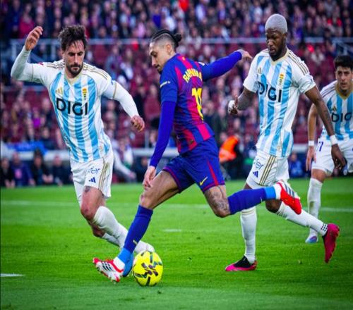 下半場開始僅僅7分鐘,奧維耶多后衛(wèi)出現(xiàn)嚴重失誤,亞馬爾斷球后送出助攻,奧爾莫的低射打破僵局。