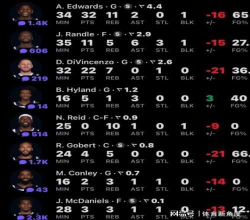 再說說今天全場最閃亮的“奇葩之星”——華子。20投13中,罰球3中2,砍下32分11板2助,可這失誤數(shù)也高達8次,一個后衛(wèi)交出這樣的數(shù)據(jù),讓人又愛又恨。不過話說回來,輸球這事兒也不能全怪華子,他那群隊友們也得好好反思反思。森林狼這問題到底出在哪兒呢?上賽季還被吹噓這套陣容潛力無限,畢竟連續(xù)兩年都?xì)⑦M了西決,可現(xiàn)在呢,眼看著又要走上重建的“老路”了。