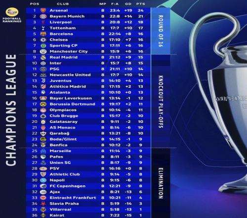 歐冠最終積分榜上,8輪15分的皇馬位居16分的曼城之后,排名第9位,無緣直通淘汰賽,本菲卡排名第24,驚險(xiǎn)晉級(jí)附加賽。姆巴佩本賽季歐冠為皇馬出戰(zhàn)7場(chǎng)比賽攻入13球,排名射手榜第1位,在擁有歐冠最佳射手的情況下,皇馬卻要去踢附加賽。