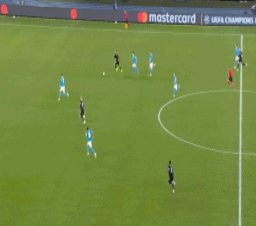 在第二個(gè)進(jìn)球時(shí),我看到了防守球員。我做決定比較晚,因?yàn)槲以诘人x擇,是上來逼搶我,還是去盯防其他人。他站在中間,所以我選擇了射門,最終進(jìn)球了。