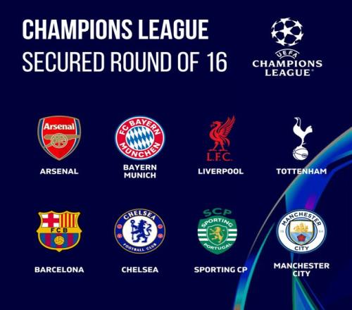直通16強的8隊分別為:阿森納、拜仁、利物浦、熱刺、巴薩、切爾西、葡萄牙體育、曼城。