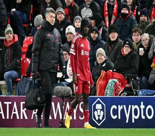 北京時間1月29日,歐冠聯(lián)賽階段第8輪,利物浦主場6-0大勝卡巴拉赫,保住利物浦躋身歐冠前八名,直接晉級歐冠16強(qiáng)。但在本場比賽中,利物浦再次遭遇傷病襲擾。開場僅3分鐘,右后衛(wèi)杰里米·弗林蓬被迫傷退,他似乎在追趕皮球時拉傷了腿筋,隨后一瘸一拐地走下場。隨后,斯洛特被迫換上了32歲的日本老將遠(yuǎn)藤航。