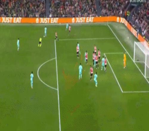 第72分鐘,路易斯-蘇亞雷斯越位在先,進(jìn)球被吹無(wú)效