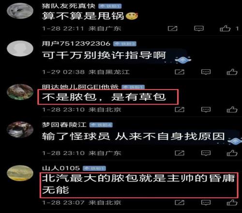 球迷的評論真有意思,膿包不是隊員,而是主教練。許指導什么時候功成名就榮升總教練?我們拭目以待。