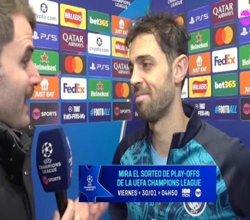 歐冠聯(lián)賽階段第8輪,曼城主場(chǎng)2-0戰(zhàn)勝加拉塔薩雷,曼城隊(duì)長(zhǎng)伯納多-席爾瓦賽后接受了TNT體育墨西哥頻道的采訪。