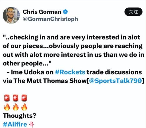 烏度卡還談到近期跟火箭隊討論交易的球隊非常多,這些球隊主動聯(lián)系了我們,他們對我們隊內(nèi)多位球員都很感興趣,這遠(yuǎn)遠(yuǎn)超出了我們的預(yù)期。