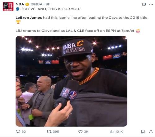 NBA官方也回顧了2016年詹姆斯帶隊(duì)奪冠后的言論:克利夫蘭,這是送給你的!