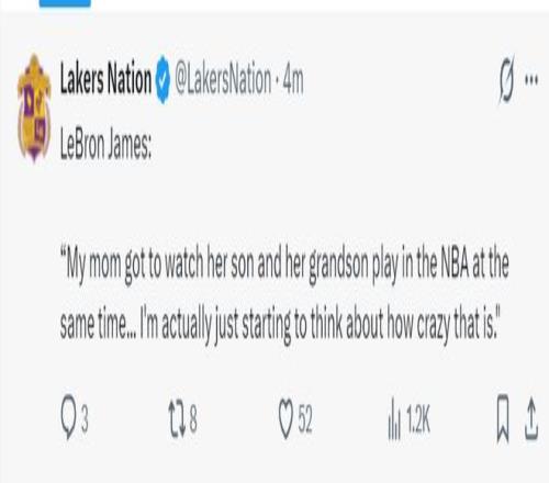 老詹繼續(xù)說道:我媽媽能夠同時(shí)見證自己的兒子、孫子在NBA打球,我其實(shí)剛剛在看視頻時(shí)思考這有多么的不可思議。