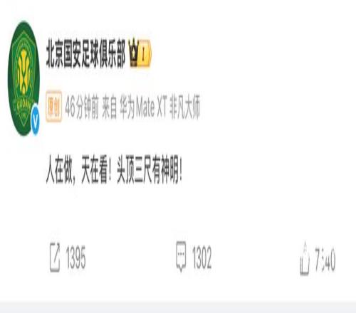 而上賽季足協(xié)杯冠軍北京國安的“人在做天在看”,直接空降熱搜第一。但大概一小時(shí)后,國安社交媒體刪掉了這條回應(yīng)。