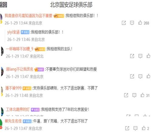 破防!北京國(guó)安球迷:我相信我的主隊(duì),大不了退出不踢了