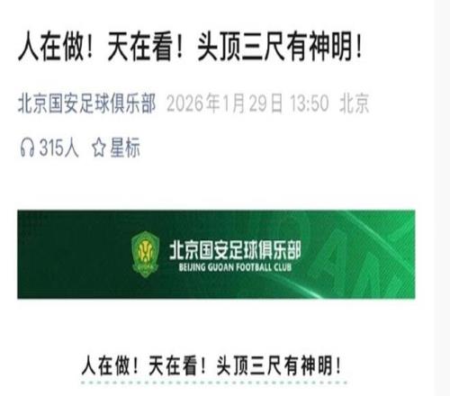 緊接著了,北京國(guó)安在官微上發(fā)文:“人在做,天在看!頭頂三尺有神明!”。此舉欲言又止,大有想說(shuō)什么又什么都沒說(shuō)的味道。