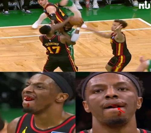 北京時(shí)間1月29日,NBA常規(guī)賽,凱爾特人主場(chǎng)106-117不敵老鷹。奧孔古在防守杰倫-布朗時(shí),被后者不小心一肘打掉牙齒,畫(huà)面有些瘆人。