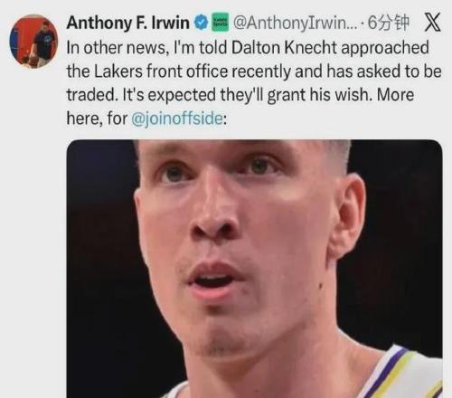 據(jù)美記報道,克內(nèi)克特主動聯(lián)系湖人管理層申請交易,預計會得到同意......