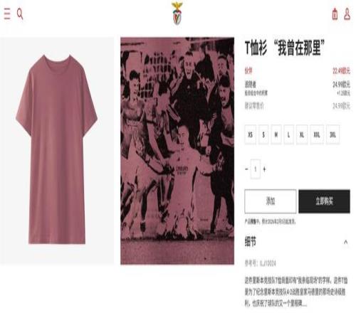 商品信息中寫道:這件T恤是為了紀(jì)念球隊(duì)4-2戰(zhàn)勝皇馬的史詩級(jí)勝利,也慶祝了球隊(duì)的又一個(gè)里程碑。這件T恤衫的會(huì)員價(jià)為22.49歐元,普通球迷購(gòu)買價(jià)為24.99歐元。