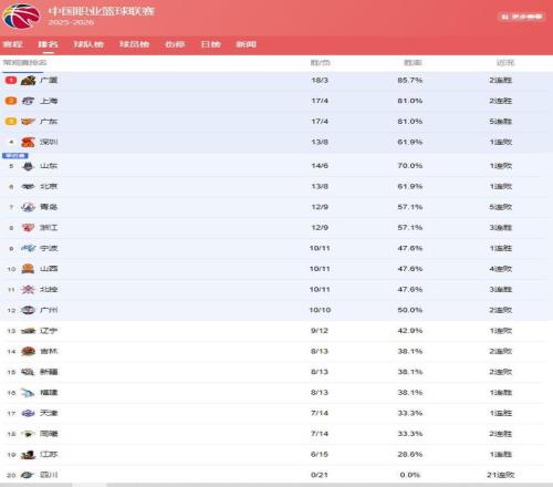 CBA25-26賽季常規(guī)賽,正在火熱進(jìn)行中,各支球隊(duì)為了排名和季后賽而努力奮戰(zhàn),比賽打的也是精彩不斷,逆轉(zhuǎn)、爆冷那是時(shí)常發(fā)生,排名也在隨時(shí)發(fā)生變化!在第21輪比賽打完后,上海登上第2,北京隊(duì)5,山東殺進(jìn)前4,6隊(duì)展開第12名的爭(zhēng)奪!