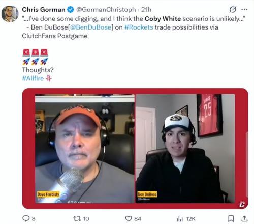 火箭隊(duì)記本-杜博斯實(shí)際上在一天之前就知悉了公牛、火箭關(guān)于懷特的交易的探索,本-杜博斯在播客節(jié)目中明確表示:因?yàn)楣L岢龅慕灰谆I碼火箭無法匹配,所以火箭交易得到懷特不太可能達(dá)成。