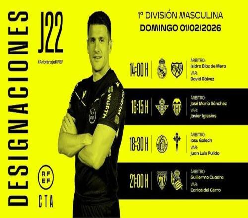 西班牙足協(xié)官方公布了周日西甲四場(chǎng)比賽的裁判安排,迪亞斯-德梅拉將執(zhí)法皇馬vs巴列卡諾。