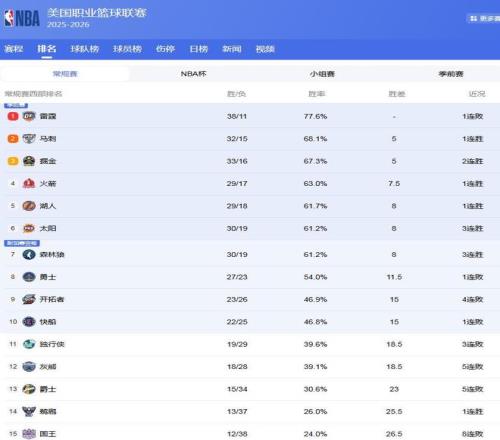 NBA最新排名:約基奇復(fù)出掘金沖第2,湖人第5難保,6隊搶東部第4