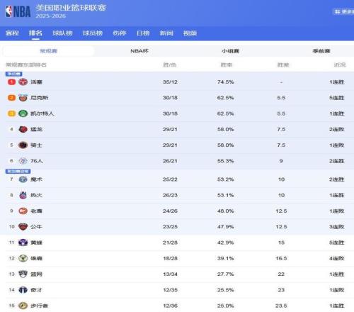 NBA全明星賽季愈發(fā)臨近,NBA得爭奪也變得更加激烈!西部除了雷霆隊穩(wěn)坐第1外,2-6名的球隊都有拿下第2的機(jī)會!東部同樣精彩,尼克斯、綠軍不相上下,4-7名的4支隊伍搶第4,排名爭奪進(jìn)入了白熱化,現(xiàn)在我們來看看NBA排名:約基奇復(fù)出,掘金沖第2;湖人第5難保,5隊搶東部第4!