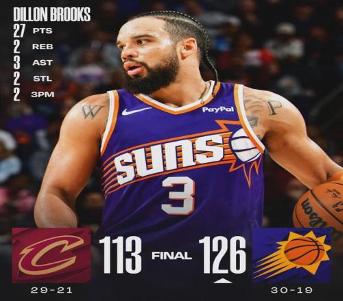 北京時(shí)間1月31日,NBA常規(guī)賽:太陽背靠背126-113輕取騎士。上一場(chǎng)轟下40分的狄龍,延續(xù)了火熱手感:14投9中,三分4中2,罰球8中7,砍下27分2籃板3助攻2搶斷,正負(fù)值+24!狄龍得分又是全場(chǎng)最高,正負(fù)值全場(chǎng)第二高。