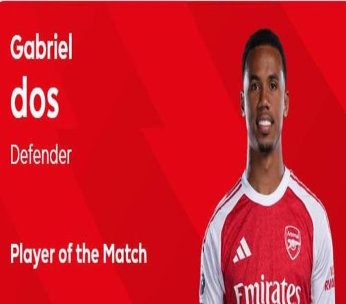 賽后,他以54%的得票率當(dāng)選英超官方本場比賽最佳球員。此外,加布里埃爾還有60次觸球,40次傳球32次成功,10次長傳4次成功,完成了1次射門并射正,2次被對手犯規(guī)。