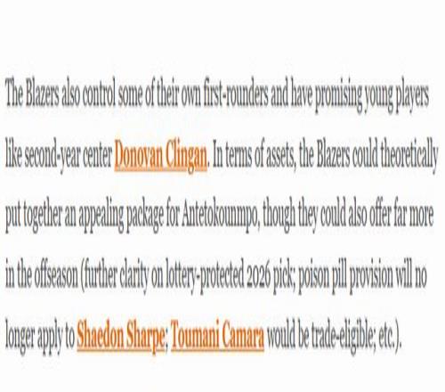 正是這份選秀資產(chǎn),讓開拓者屢屢被卷入字母哥轉(zhuǎn)會(huì)至其他球隊(duì)的交易流言中。在這類交易框架下,開拓者會(huì)先將手中的選秀資產(chǎn)輸送給雄鹿,以此助力那些自身選秀籌碼不足的球隊(duì)完成交易,同時(shí)為自己換回一到兩名球員。