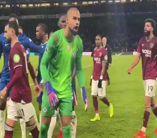 羅伯特-桑切斯在切爾西對陣西漢姆的比賽中場休息時,對著憤怒的藍軍球迷大聲怒吼。