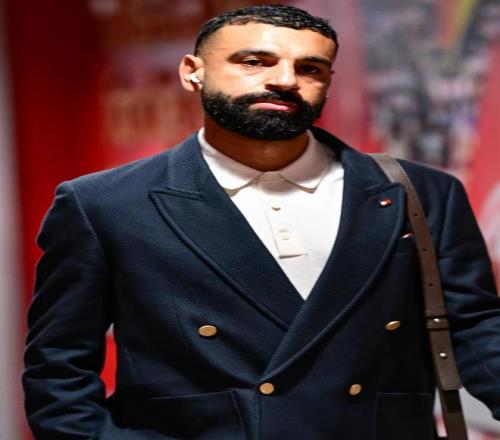 薩拉赫穿著一套西裝、搭配流蘇鞋走過(guò)通道時(shí),神情顯得有些低落。