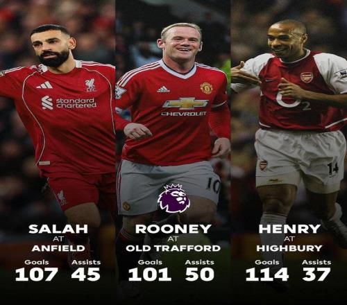 在單一球場英超參與152球,薩拉赫打破亨利、魯尼紀錄