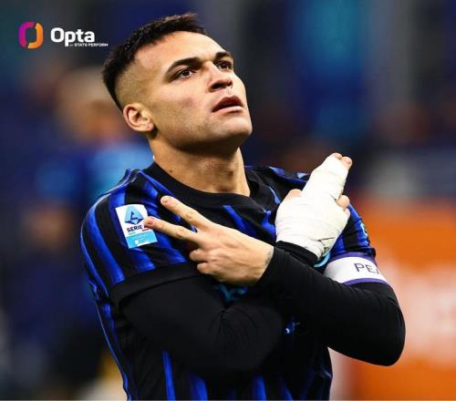 勞塔羅-馬丁內(nèi)斯在意甲為國際米蘭的進球數(shù)達到128球,與阿爾托貝利并列俱樂部歷史意甲射手榜第四位——僅有朱塞佩-梅阿查(197球)、貝尼托-洛倫齊(138球)和涅爾什(133球)在意甲為藍黑軍團攻入更多進球。