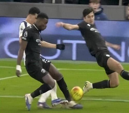 爭議出現(xiàn)在第53分鐘:熱刺前鋒多米尼克·索蘭克在禁區(qū)內(nèi)與曼城中衛(wèi)馬克·格伊發(fā)生身體接觸,皮球隨后彈入網(wǎng)窩。慢鏡頭顯示,索蘭克似乎從身后踢到了格伊支撐腿的后側(cè),導(dǎo)致后者失衡將球碰進自家大門。