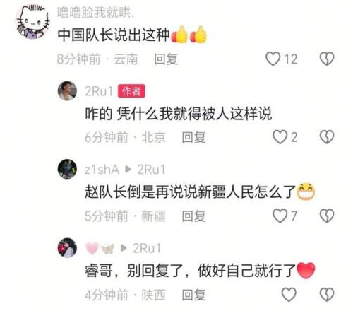 “新疆邊上待一待,自己人民都沒(méi)有主觀思想,都是別人帶著跑?!?,這就是中國(guó)男籃國(guó)家隊(duì)隊(duì)長(zhǎng)趙睿在球隊(duì)輸球后對(duì)新疆球迷的回應(yīng),而面對(duì)另一條關(guān)于他罰球不中的評(píng)論,他更是直接回復(fù):“回去打馕吧”,一場(chǎng)普通的CBA常規(guī)賽失利,因?yàn)閲?guó)家隊(duì)隊(duì)長(zhǎng)在社交媒體上的這幾句話,已經(jīng)變成了超越籃球范疇的公共事件