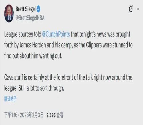 名記Siegel對此表示,是哈登主動申請交易,快船雖然很震驚但也同意了。