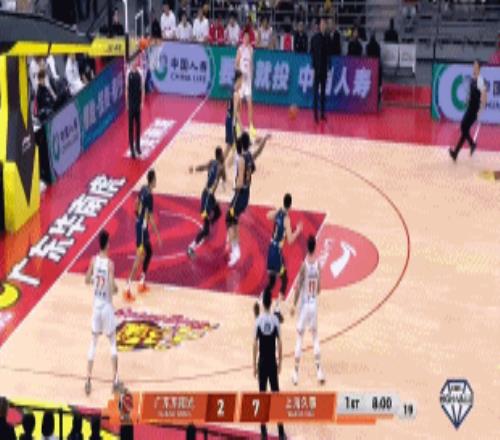 后半節(jié)雙方二陣容比拼,王哲林中投+空切暴扣+吃餅連得6分,薩姆納奎因打出空接連線后廣東連續(xù)出現(xiàn)失誤,上海一口氣領(lǐng)先來到21-9,杜鋒終于喊出暫停。