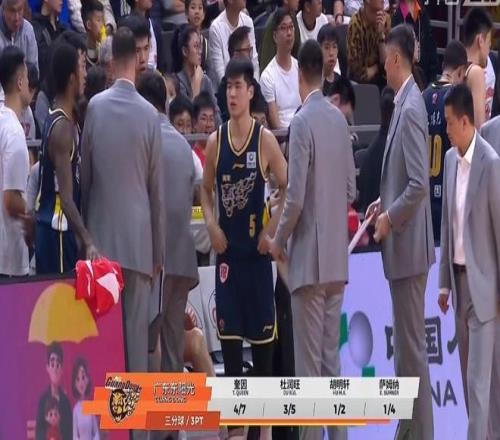 第二節(jié)焦泊喬杜潤旺被白邊打爆,張皓嘉奎因被張鎮(zhèn)麟打爆,胡明軒也被杜鋒直接棄用,半場廣東三分球14中3,單節(jié)再輸9分,半場落后30-51!奎因6分,薩姆納16分5板,兩人合計(jì)8次失誤,張鎮(zhèn)麟半場三分9中5拿到15分,白邊11中7拿到16分8板!
