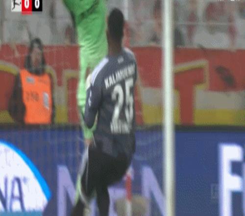 第25分鐘,哨響后卡利穆恩多仍做出射門動(dòng)作,裁判對其出示黃牌警告