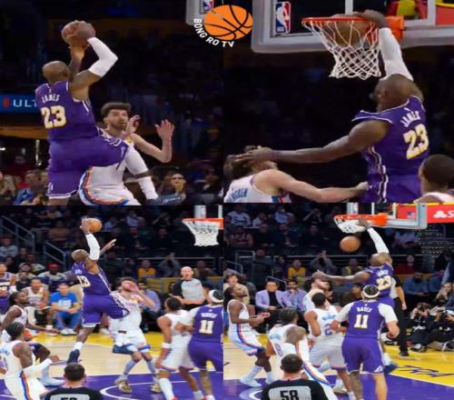 勒布朗接斯瑪特傳球內(nèi)切,特意用左手,扣了右側(cè)補(bǔ)位不及的切特。