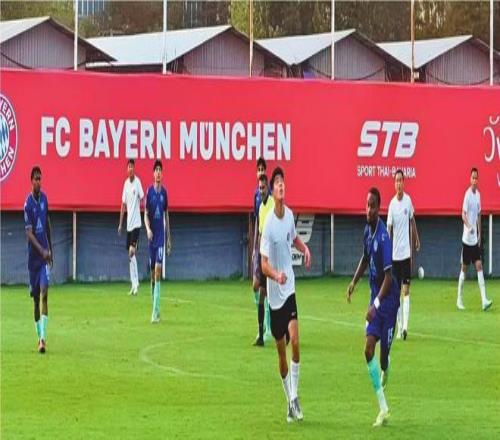圖為遼寧鐵人隊(白色球衣)與泰國農(nóng)業(yè)大學隊進行熱身賽。 遼寧鐵人足球俱樂部供圖
