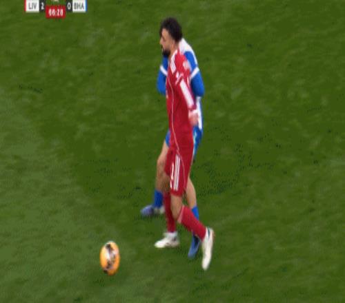 第74分鐘,薩拉赫超車強(qiáng)突,三笘薰將球破壞