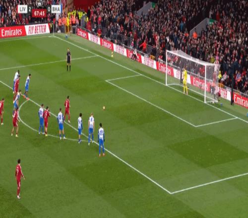 第16分鐘,薩拉赫主罰小角度任意球直接攻門,皮球偏出立柱