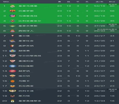 隨著皇馬41,黃潛12,西甲第24輪最新排名出爐!皇馬超巴薩2分