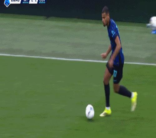 比賽開(kāi)打后第17分鐘,勞塔羅積極反搶斷球,小圖拉姆禁區(qū)前沿持球分向右側(cè),路易斯-恩里克似傳似射推到門(mén)前,小坎比亞索伸腿一擋改變路線不慎將球擋進(jìn)了自家球門(mén),1:0!第26分鐘,卡盧盧右路斜傳,麥肯尼倒三角分球,喬納森-戴維前點(diǎn)虛晃一槍?zhuān)】脖葋喫骱簏c(diǎn)墊射將功補(bǔ)過(guò),1:1!