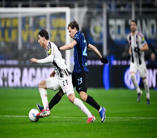 第30分鐘,伊爾迪茲左路一對(duì)一自信突破兜射遠(yuǎn)角,索默獻(xiàn)出精彩的飛身精彩撲出來(lái)球;第34分鐘,蘇契奇禁區(qū)前沿持球靈巧擺脫過(guò)人橫敲,勞塔羅不停球撞射發(fā)力過(guò)猛打偏;第41分鐘,迪馬爾科開(kāi)出角球,小圖拉姆高高躍起頭球攻門(mén)被迪格雷戈里奧神勇?lián)涑?,洛卡特利解圍擊中自家立柱,尤文隨即展開(kāi)反擊卻被巴斯托尼精準(zhǔn)斷球,卡盧盧背后拉人犯規(guī)拿到第二張黃牌被紅牌罰下。