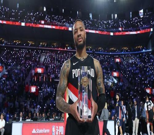 開拓者球星利拉德首輪轟下27分晉級(jí)決賽,之后又在決賽輪斬獲29分,擊敗布克(27分)奪冠。