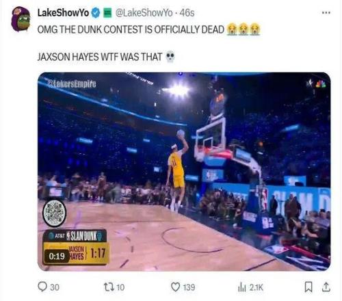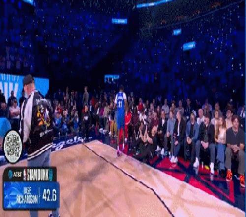 我以為 約翰遜要扣一個(gè)驚天動(dòng)地的,結(jié)果他竟然致敬海斯,扣了個(gè)拉在地上的,47.8分,47分都是給他的舞蹈的。