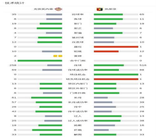 北京時(shí)間2月15日意大利足球甲級聯(lián)賽第25輪,克雷莫內(nèi)塞主場迎來熱那亞的挑戰(zhàn)。全場比賽結(jié)束,兩隊(duì)均未攻破對方球門,最終克雷莫內(nèi)塞0-0戰(zhàn)平熱那亞。