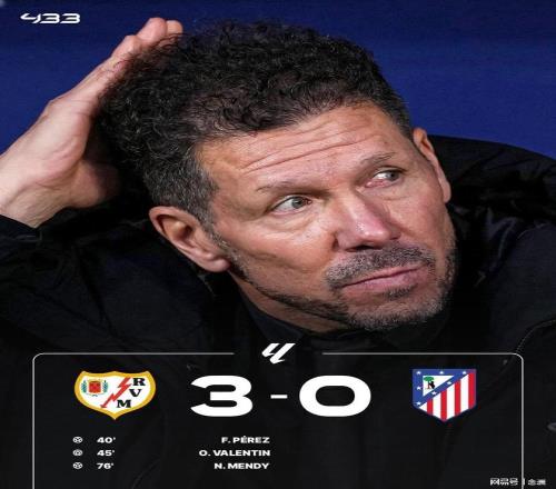 西甲第24輪,馬競(jìng)客場(chǎng)0-3不敵巴列卡諾,遭遇2連敗+4輪不勝,跌至積分榜第4,弗蘭-佩雷斯、奧斯卡-瓦倫丁上半場(chǎng)尾聲階段連進(jìn)2球,下半場(chǎng)諾貝爾-門迪再下一城。