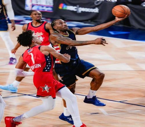 很難想象這樣的球員,竟然會(huì)進(jìn)不去全明星,最后還是遞補(bǔ)進(jìn)去的。這樣的全明星強(qiáng)度,也是倫納德最喜歡的。今年全明星堪稱是20年最后一節(jié)之后強(qiáng)度最大的一次,那次真的可以說(shuō)是季后賽強(qiáng)度,倫納德的舒適區(qū)。