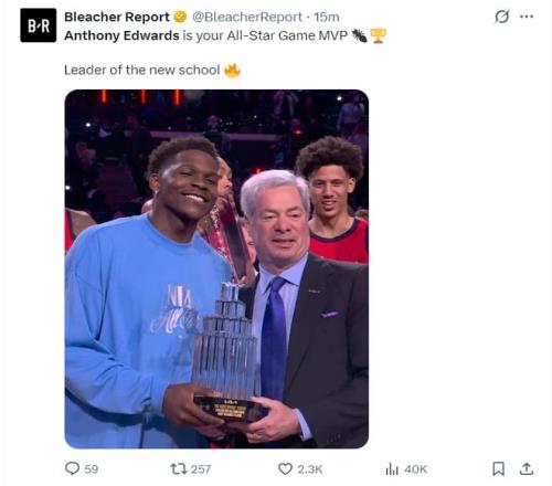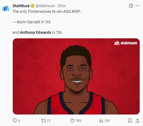 根據(jù)數(shù)據(jù)媒體StatMuse的報(bào)道,愛德華茲拿到2026年AMVP是森林狼隊(duì)史2003年的凱文-加內(nèi)特后首人。